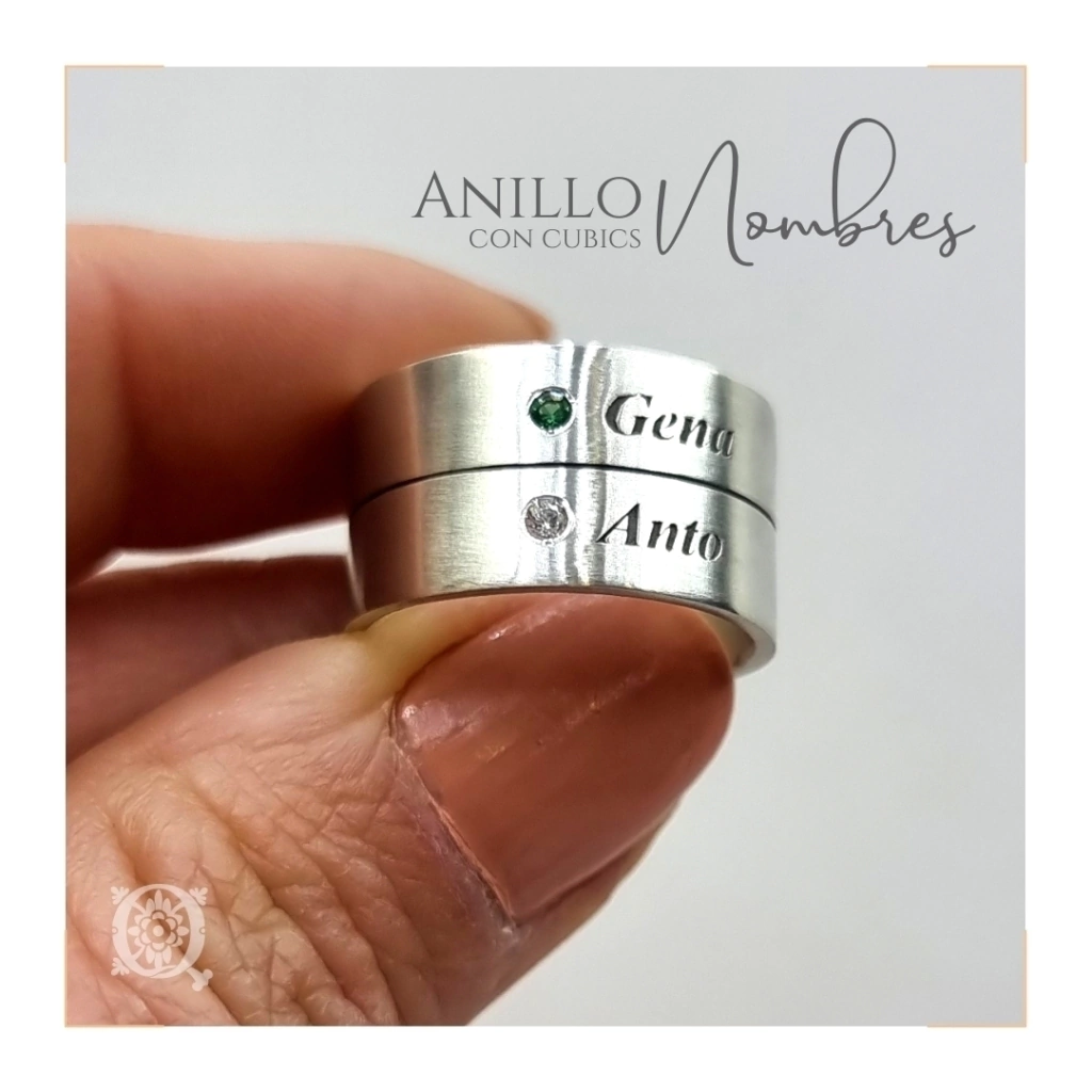 Anillo Nombres es un anillo hermoso que se puede personalizar tanto en el grabado como en la elección del color de los cubics..