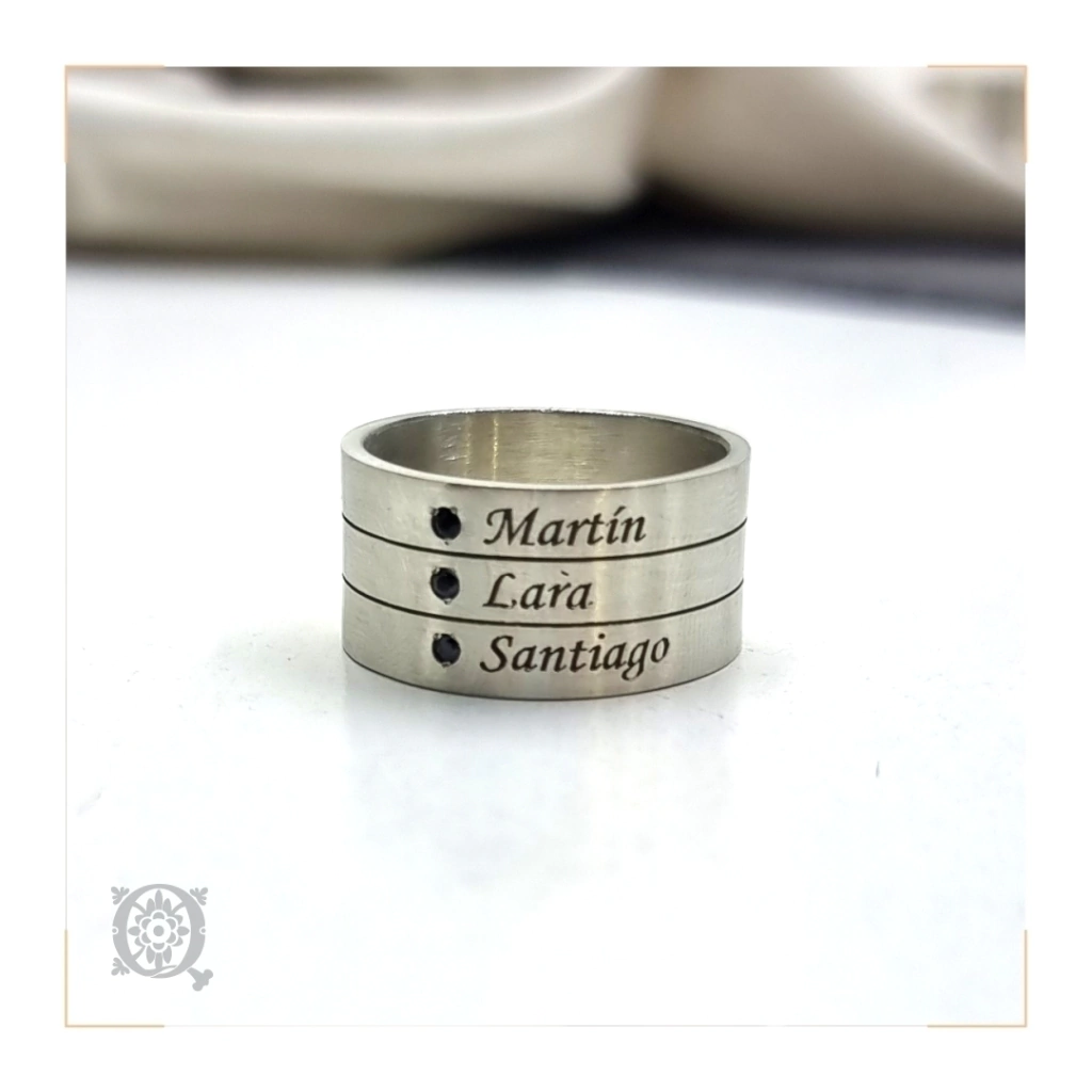 Anillo Nombres es un anillo hermoso que se puede personalizar tanto en el grabado como en la elección del color de los cubics..