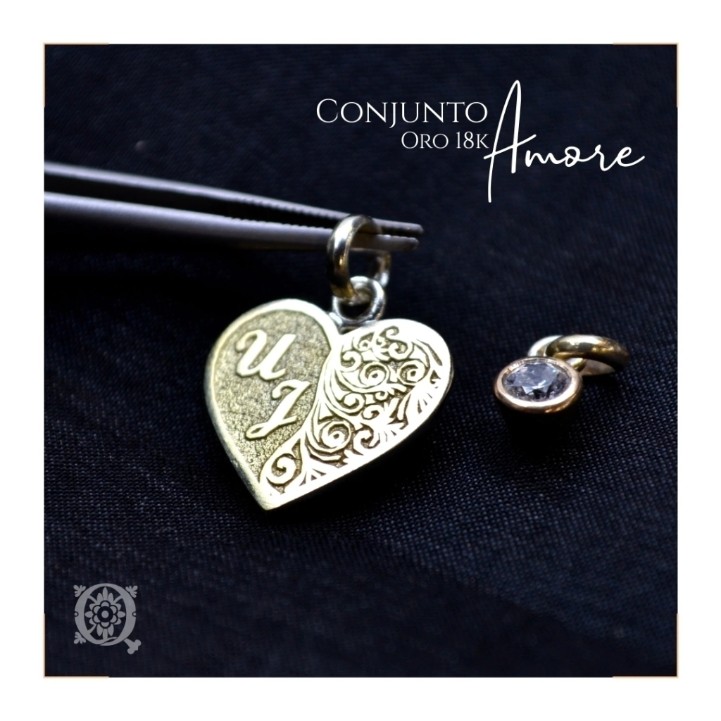 - Peso: 3,4 grs. aprox. peso total (2,6 grs. dije corazón y 0,8 grs. dije con cubic)