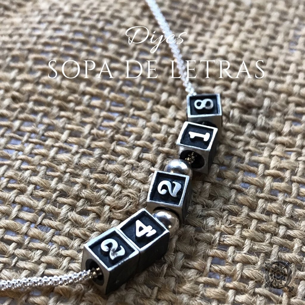 Los dijes sopa de letras son de nuestras piezas más lúdicas, labradas en plata maciza. Vos elegís qué mensaje llevar enhebrado en una cadena canastita.