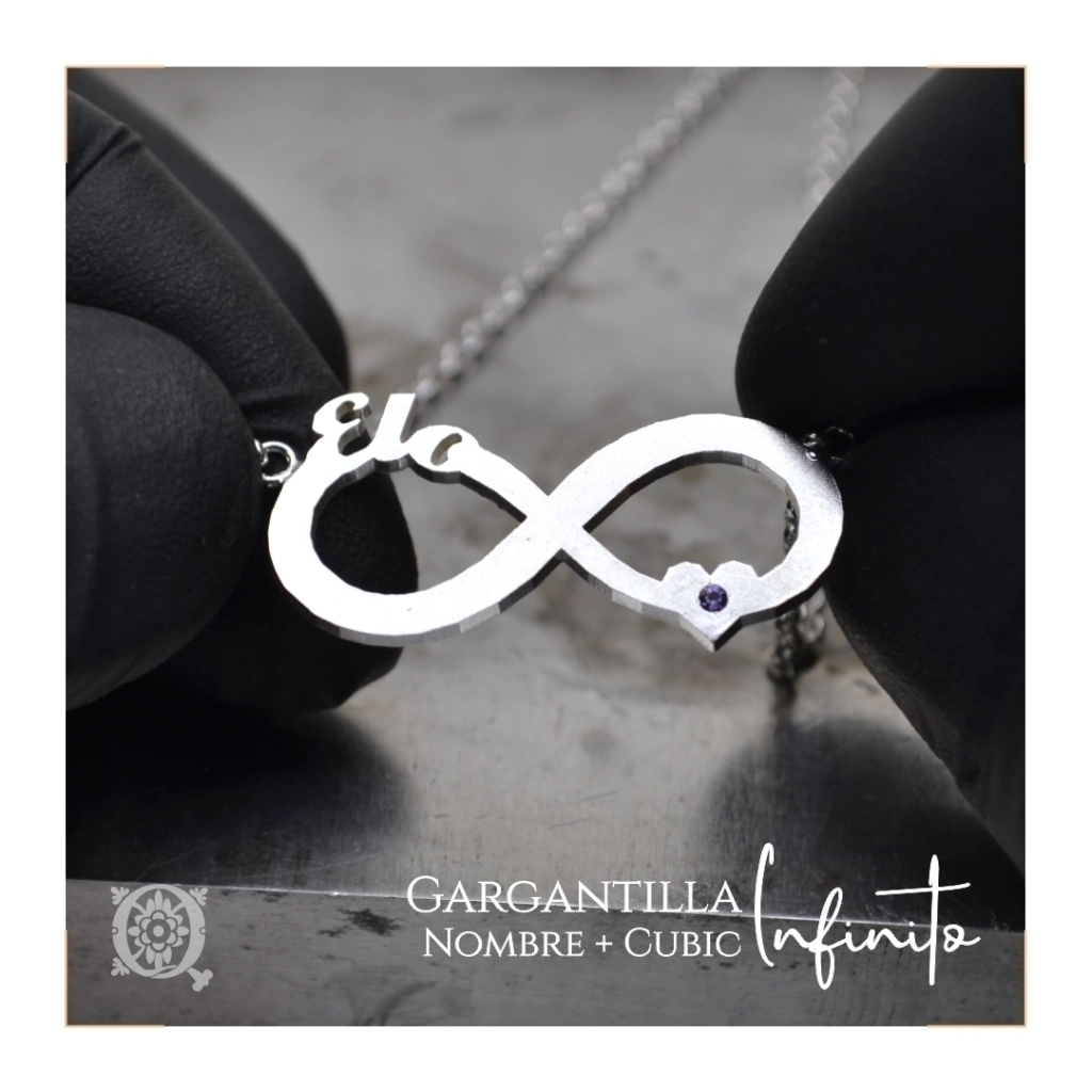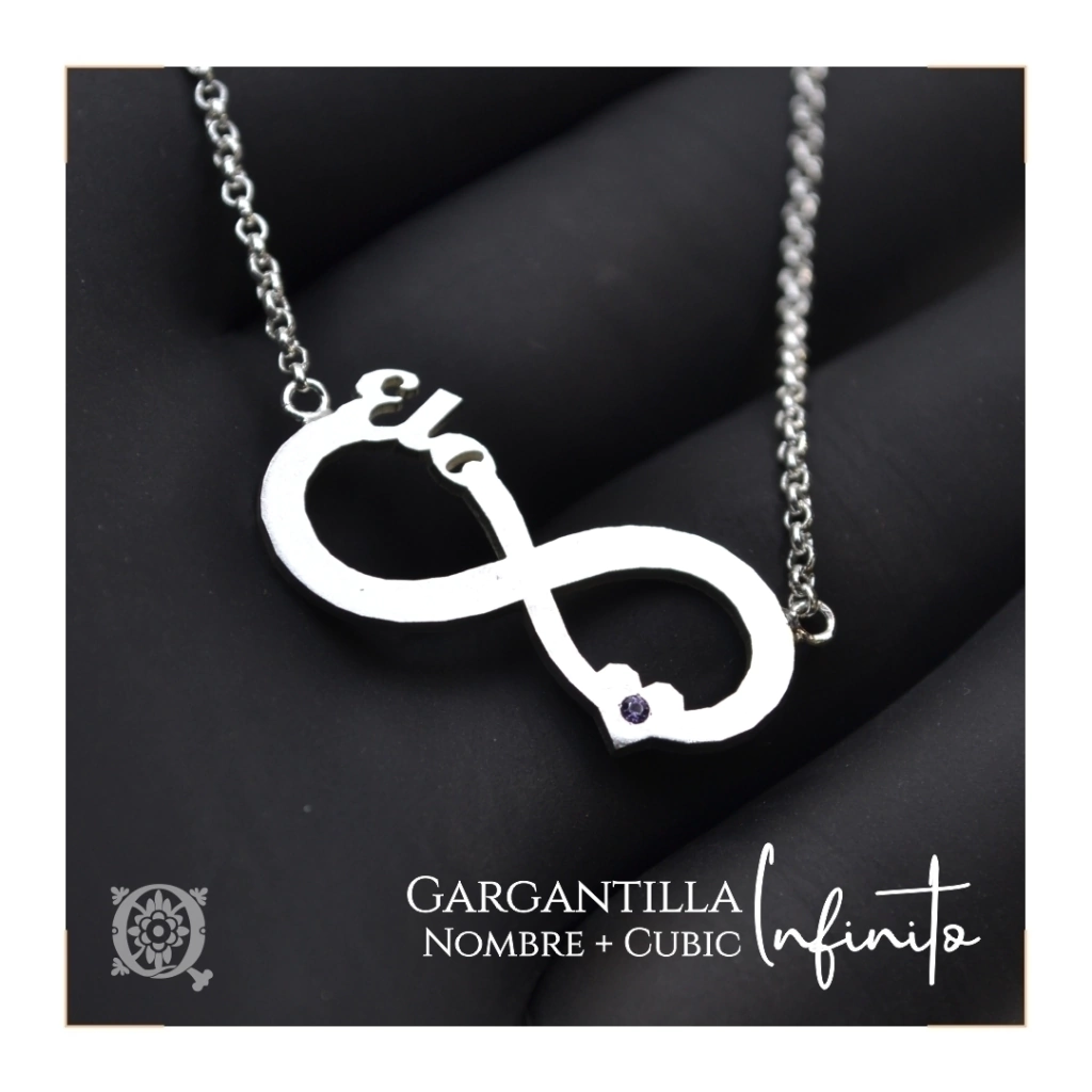 La Gargantilla Infinito con nombre y el corazón con un detalle de cubic engarzado. Representan el amor eterno e incondicional. Un bello presente personalizado con el nombre grabado de esa persona tan especial.